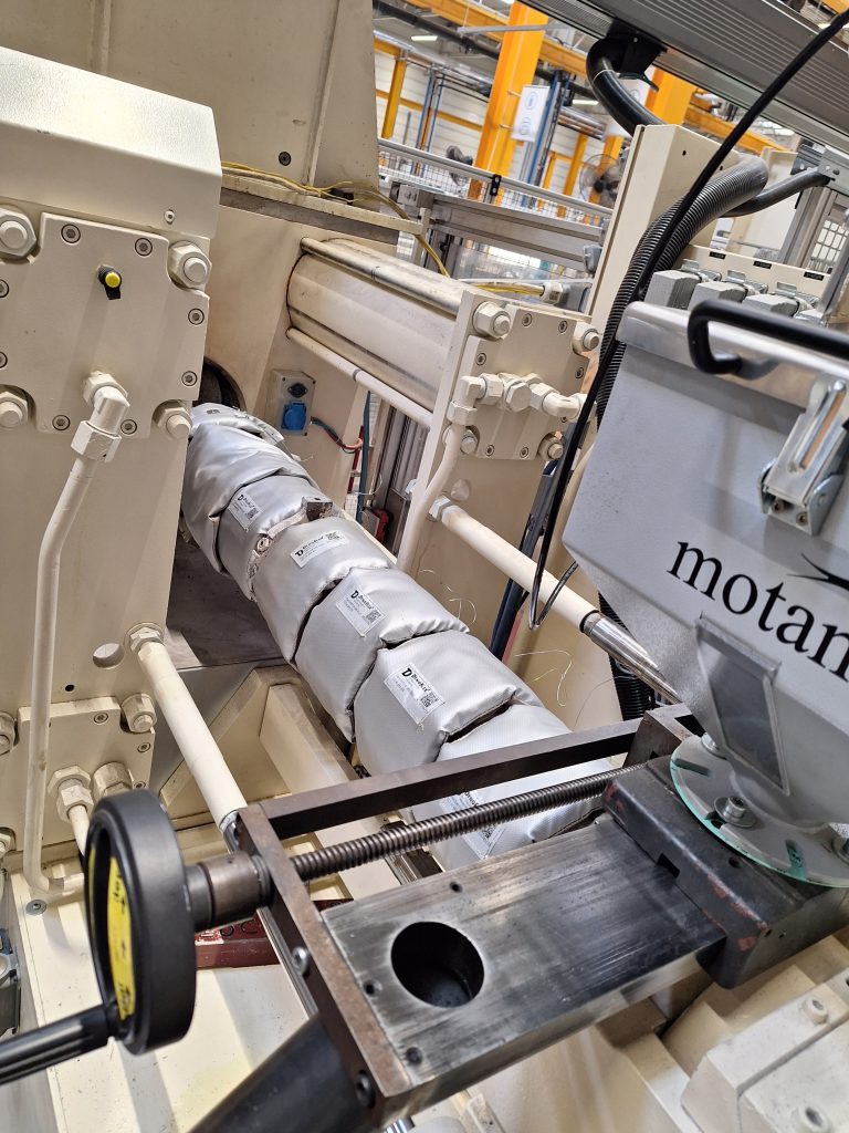 Műanyagipari berendezések, tipikusan extrúderek, fröccsöntő gépek és fóliafúvó berendezések fűtőpalástjai jelentős hőveszteséggel üzemelnek. A gyakran 200°C feletti felületi hőmérsékletek és a villamos árammal történő fűtés miatt rendkívül gyors megtérüléssel végezhető szigetelési projekt ezeken a berendezéseken. A gyakori fűtőpalást cserék és karbantartási munkák miatt ezeken a felületeken is szigetelőpaplanok alkalmazása jelenti az optimális megoldást.